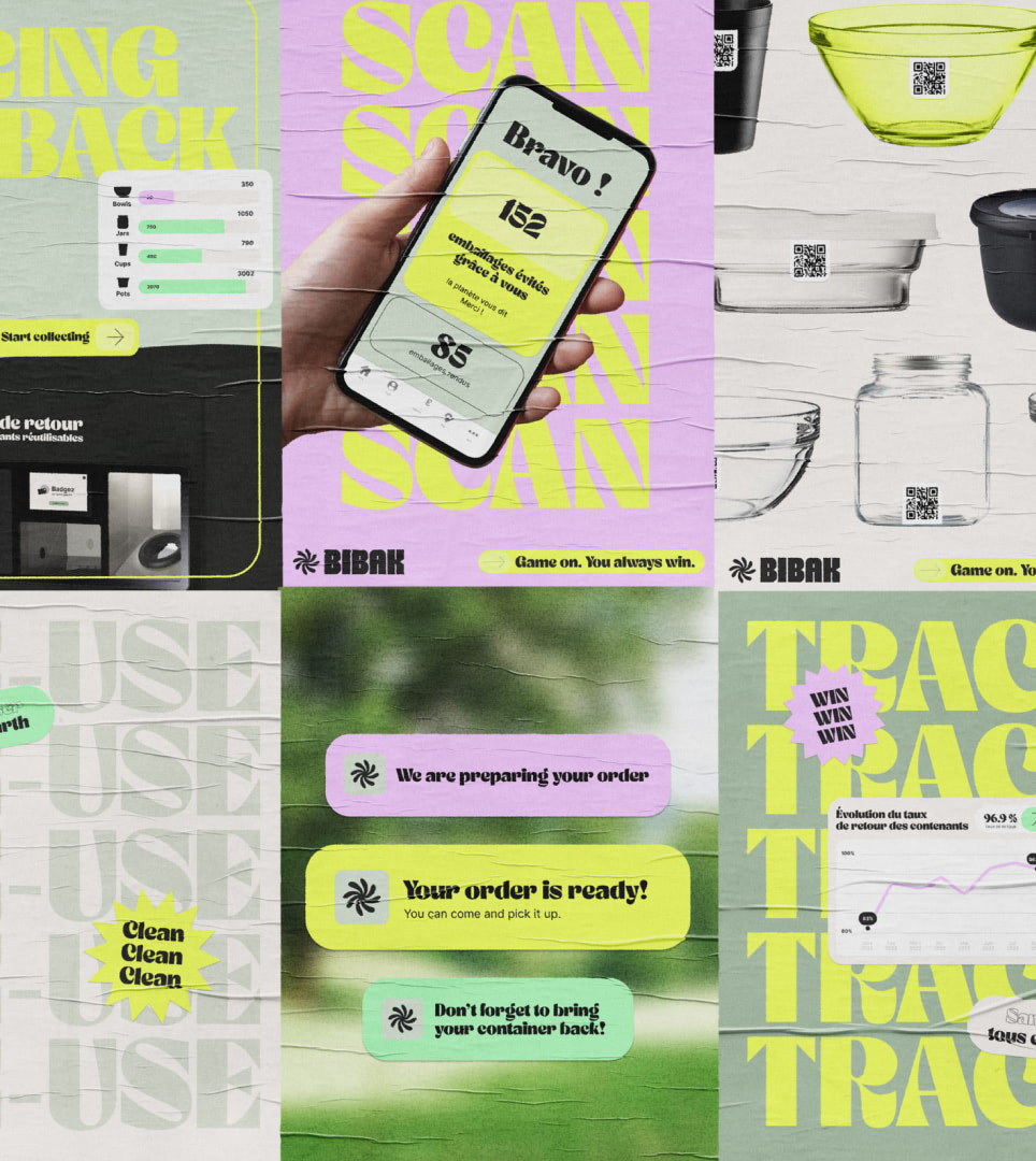 Our approach to the brand design was inspired by BIBAK’s its positive attitude. There are no finger-wagging demands or boring lectures here. Instead, we designed a positive brand that turns re-use into a game, making it easy and fun to get involved.